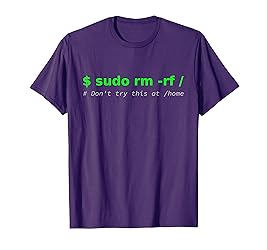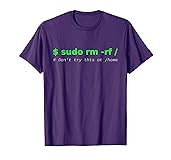 - Funny design. The master of all Linux commands: $ sudo rm -rf /. Very useful if you need to clean out your PC. Quite less so if you didn't. Which is why we thought it'd be good to add a little warning: "Don't try this at /home". Great gift for computer geeks, software engineers, techies, nerds, IT professionals and programmers fluent in everything Linux or Unix based.
