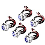 Linkstyle 5Pcs 19mm Latching Push Button Switch, 12V Metal Self Locking SPST ON-Off Switch with Wiring Harness & Blue Light for Boat Car