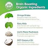 Brain Tea Focus & Memory - Brain Tea Organic Certified 4-in-1 Nootropic Herbal Supplement with Ginkgo Biloba, Gotu Kola, Lion’s Mane Mushroom, MCT Caffeine-Free for Mental Clarity (30 Sachets)