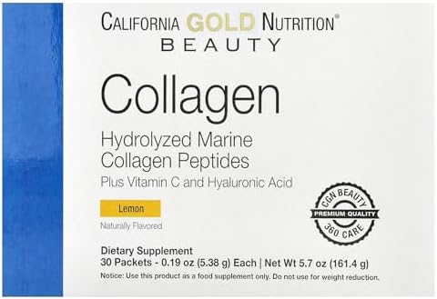 California Gold Nutrition Marine Collagen Peptides Plus Vitamin C and Hyaluronic Acid, Lemon, 30 Packets, 0.19 oz (5.38 g) Each