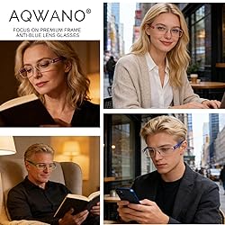 - DISCOVER THE AQWANO DIFFERENCE; AQWANO dedicates to provide high quality, high value but affordable reading glasses with nice designs. Having AQWANO Readers, enjoy your reading time right now!! About blue light: All of our electronic devices with a back-lit screen give off large quantities of blue light (your phones, Ipod, Laptop, Computer and TV.) AQWANO anti blue glasses can not only effectively isolate UV and radiation and can filter blue, suitable for watching TV or computer use, can greatly reduce the stimulation of blue eyes, eliminate eye soreness, fever or pain and other symptoms, relieve eye fatigue. FEATURES AND BENEFITS: √ Clear lens √UV 400 Protection: UV filter protects your eyes from damaging ultraviolet rays while outside √Anti Blue Ray, Reduced glare √Top quality plastic frame so lightweight and Comfortable √Colorful design:5 Colors Purple/ Brown/ Black/ Blue/White Package included: 5 x Reading Glasses 5 X Carrying case 5 x Clean cloth 2 x Strap
