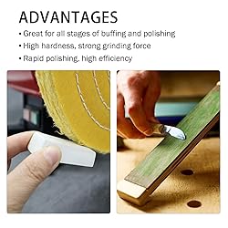- Package includes: 1pc 35g polishing compound red coarse 1pc 35g polishing compound white fine 1pc 35g polishing compound green super fine Dimension: L x W x H: 2-3/8” x 7/8” x 5/8” Weight: 35g/pcs Materials: Aluminum Oxide. Features: ★What’s the function of these buffing compound? →These Buffing/Polishing Compounds Kit great for achieve a smooth and mirror finish on a widely variety items surfaces, help you handle most kinds of projects. ★What items they are suitable be used for? →The polishing Compounds are Idea for metals polishing buffing, such as: stainless steel, steel, iron, aluminum alloy, brass, bronze, copper, silver, gold etc. ★How to use? →The buffing wheel Compounds are designed to be applied on buffing wheels by simply turning a buffing wheel on a grinder/motor/drill and lightly press the compound against the wheel while the heat/friction will transfer the compound onto the polishing wheel. ★Why choose us? →These buffing Compounds are color coded for easy identification in a scale from coarse to super fine, Red is coarse, White is fine, Green is super fine. Can fulfill your most polishing purpose.