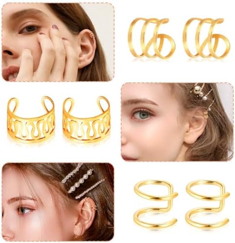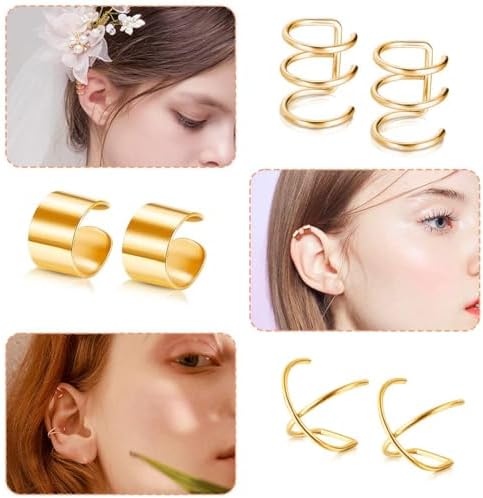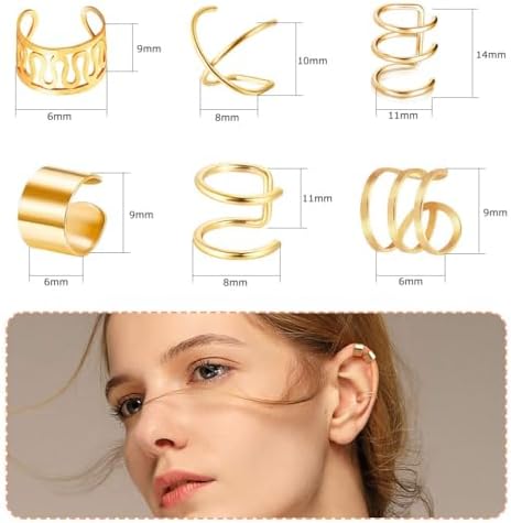18 Pairs Ear Cuff, Roctee 6 Styles Cartilage Clip On Earrings Set Stainless Steel Ear Clip Fake Cartilage Earring Non Piercing Helix Cartilage Ear Clip Earring Ring for Women (Gold/Silver/Rose)