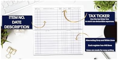 - Made in the USA. Each register has 444 lines. Lines are gray in color. Standard checkbook registers having Item No. Date, Description of Transaction, Payment Debit, Deposit Credit and Balance Column.