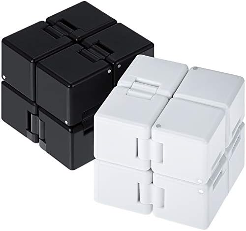 2 Packs Infinity Cube Toys Fidget Blocks, Mini Infinity Cube Desk Toy Stress Relief Toys, Cube ADHD Desk Toy for Adults, Sensory Toys (Black, White)