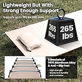 WIDER & LONGER – BUILT FOR REAL COMFORT: Our upgraded ultralight folding camping cot is thoughtfully designed with adults in mind. Now 78.7" long and 27.2" wide, it offers extra room to stretch out—no more cramped nights outdoors! Whether you sleep on your back, side, or stomach, this cot gives you space to move freely and sleep soundly LIGHTER – EASY TO CARRY ANYWHERE: Our compact folding backpacking cot is designed to keep your pack light and your trip easy. Weighing only 5 lbs, it’s effortlessly portable—you can lift it with one hand or sling it over your shoulder without feeling weighed down. When folded, it measures just 18.9" × 6.7", about the size of a small handbag. Slip it neatly into your travel backpack and enjoy the freedom of lightweight camping gear that goes wherever you do EASY SETUP: Designed for effortless adventure. This ultralight camping cot sets up in minutes—no tools, no fuss. Smooth, intuitive frame design makes packing up just as quick. A built-in side pocket keeps your essentials—phone, keys, wallet—right where you need them. And when it’s time to rest, the included storage bag transforms into a soft pillow or clothing sack for extra comfort STURDY CONSTRUCTION: Engineered with a high-strength 7075 aluminum alloy frame, this cot delivers exceptional stability without extra weight. It confidently supports up to 265 lbs, offering reliable rest wherever you set up camp. The bed surface is crafted from 300D ripstop fabric—breathable, smooth, and tough enough to resist wear and tear. No sagging, no scratchy texture—just firm, cool comfort you can trust, night after night VERSATILE USE: From rugged trails to cozy living rooms, this ultralight foldable cot is made for every moment. Perfect for camping, hiking, hunting, road trips, or beach days, it’s also a great temporary bed for guests or office naps. Compact, durable, and effortlessly portable, it adapts to your lifestyle—bringing instant comfort wherever you go