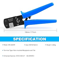 【Efficient Crimping Range】: Accommodates 32-20AWG /0.03-0.52mm², making it ideal for micro connector pins 【Stable Construction】: Constructed from high-quality alloy steel and ABS for robustness and long-lasting use 【Advanced Crimping Technology】: Features a double-layer Wire Electrical Discharge Machining (EDM) Cutting jaw for simultaneous crimping of conductor and insulation sheath 【Wide Compatibility】: Perfectly compatible with Molex CLIK-Mate, Molex PicoBlade, JST SHD, JAM, TYCO D-100 connectors, and more 【Complete Package】: Includes the Knoweasy 3220M JST Crimper, a helpful welcome guide, a worry-free 12-month warranty, and friendly customer service support
