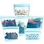 Reusable food container silicone bag, Full Set 6, 2 Cups, 2 Dishes, 2 Bags Zip Containers Storage, 100% Silicone Reusable Food Bag, Stand Up Preservation Bag, Rounded interior for easy cleaning.