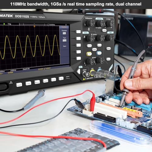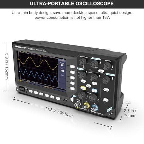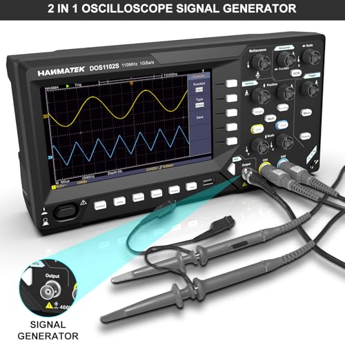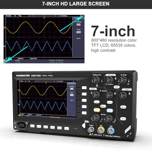 HANMATEK 110mhz Ancho de banda DOS1102 Osciloscopio Digital con 2 Canales y Pantalla de 7 pulgadas / 18 cm, Pantalla TFT-LCD, Kit de Osciloscopio Profesional Portátil con Tasa de Muestreo de 500 MS/s *2