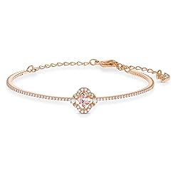 Simple and timeless: This rose-gold tone finished bracelet combines the precision and quality of real sparkling Swarovski crystals in an elegant clover design, featuring a pink "dancing crystal" Sumptuous and elegant: The Una bracelet features a clover-shaped pink crystal inside a white pavé 3D cage to form the shape of a dainty clover on a rose-gold tone finishedband Designed to last: Swarovski jewelry will maintain its brilliance over time when simple care practices are observed; remove before contact with water, lotions or perfumes to extend your jewelry's life Great for giving: A memorable gift for Valentine's Day or Mother's Day for the woman you love, this sweet bangle bracelet can be worn as an everyday accent or a unique, conversation-starting accessory Items delivered: 1 x Swarovski Una clover bracelet, 2 1/4 x 1 3/4 inch rose-gold tone finished band, with sparkling pink and white crystals, complete with Swarovski bracelet box