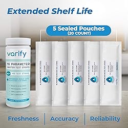 - The Varify Premium Drinking Water Test Kit transcends ordinary testing by evaluating 17 essential parameters, including chlorine, fluoride, lead, iron, and bacteria, to offer a comprehensive analysis of your water's quality. Crafted with professional-grade precision, each strip in this kit ensures dependable results, reflecting Varify's commitment to reliability and detail. User-friendly and equipped with a color-coded system, the kit simplifies complex water quality assessments, allowing for quick, accurate evaluations. With 100 strips in 5 separately sealed pouches for enhanced freshness and two easy-to-use bacteria tests for rapid, 48-hour results, Varify not only ensures the accuracy and ease of monitoring but also contributes to a global cause. Each purchase aids Water For Good, targeting water poverty in Central Africa, so every test supports not just your family's health but also #CleanWaterWorldwide, making a tangible difference in the lives of those in need.