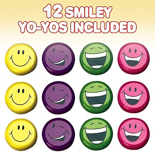 - CLASSIC YOYO FUN: Have the little ones giggling in glee with these super-fun smile face yoyos for kids. Every set comes with 12 yo-yo toys for hours of classic fun. Each emoticon yoyo measures 2”; this means ultra-portable fun to keep boredom at bay at home and away.