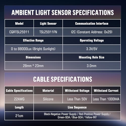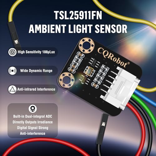 - CQRobot Ambient Light Sensor Built-in TSL25911FN chip, Onboard voltage translator, compatible with 3.3V/5V operating voltage, Compatible with Raspberry Pi, Arduino, STM32 and other motherboards. Adopts TSL25911FN, measures infrared plus visible light. (wider range than TSL2561)