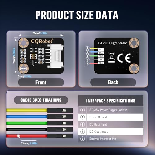 CQRobot TSL25911FN Ambient Light Sensor Compatible with Raspberry Pi, Arduino, STM32. 0 to 88000Lux Detection Range, 600M: 1 Wide, for Industry, Mobile Phone, Computer, Lighting, GPS, etc.