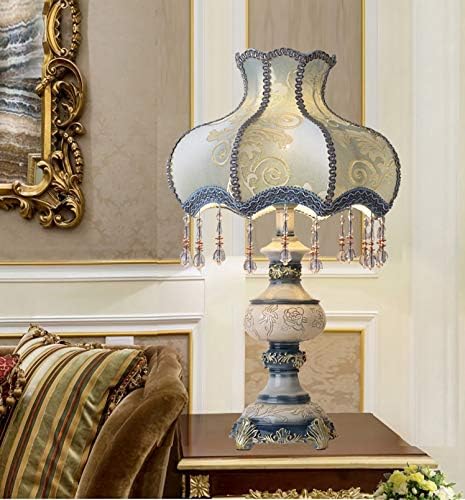 - Classic Victorian Style with Elegant Fabric Shade:Handmade blue fabric lampshade and vintage-inspired resin base bring timeless elegance to your bedroom, office, or reading corner.