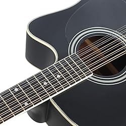 12 String Acoustic Guitar Cutaway,Adjustable Truss Rod Full Size Bundle with Gig Bag,Tuner,Strings,Strap, Picks, Black By Janerock