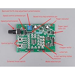 This drive control board has 4 working modes:Normal Mode 1 / Normal Mode 2 /Jog Mode / Automatic Round-trip Mode.(For details, please refer to the description below) Voltage Range: DC 5V~12V;Rated Current: 800mA Power Reverse Connection Protection,Over-current Protection,Overheat Protection. Size: length 59.3MM, width 43.6MM Fine workmanship and good performance.Long service life.