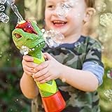 T-REX THEMED, MOTORIZED BUBBLE WAND: Kids of all ages will love the super cool dinosaur shaped bubble baton. Watch as tons of exciting bubbles shoot out of the head in a continuous stream. FLASHING LIGHTS: Bright lights will flash for day or nighttime fun. The awesome colors will help inspire kids' imaginative, pretend play. Blowing bubbles has never been more fun! FUN MUSIC: Boy and girls will be entertained for hours with realistic dino sounds while waving the wand. Transform your backyard into a prehistoric adventure with the bubble wand. EASY TO USE: Simply unscrew the bottom of the wand, fill with bubble solution and push the trigger for tons of bubbles. BUBBLES INCLUDED: Includes a 100 mL bottle of premium Maxx Bubbles bubble solution. This toy will have kids playing in no time.