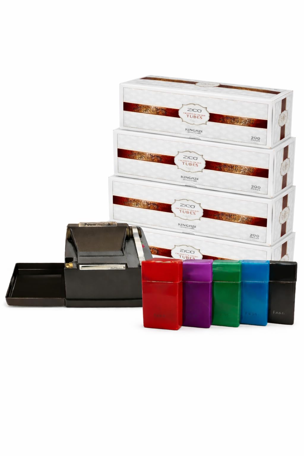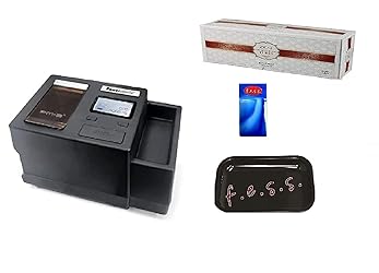 1 Box Fess Brand Assorted Design Tray, Free 1pk Fess branded Cigarette Case (85mm), King Tubes TOP OF THE POWERMATIC LINE - Powermatic's premium electric machine for reliably easy use and speed SAFETY OF AUTOMATIC JAM PROTECTION - Automatically detects if there is a tobacco jam to protect the machine ONE YEAR WARRANTY - Manufacturer warranty for one year or 20,000 cigarettes (whichever comes first)