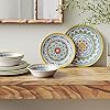 - Complete Dinnerware for Everyday & Entertaining: This 12-piece set includes four dinner plates, four salad plates, and four all-purpose bowls, each adorned with intricate Mediterranean-inspired motifs. The vibrant floral medallions and sun-drenched hues make every meal a celebration. Whether you're hosting a summer gathering or enjoying a quiet night in, this coordinated set brings beauty and charm to every table.