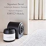 - Recreate the unforgettable EDITION Hotels experience in the comfort of your own home with our exclusive EDITION Fragrance Diffuser Set. Imagine stepping into a world-renowned luxury hotel lobby – now, that exquisite aroma can be yours every day. This premium diffuser air machine for home delivers the signature fragrance featured in EDITION guest rooms and lobbies globally, transforming your personal space into a sophisticated sanctuary. Indulge your senses with our captivating, complex scent profile. Bright top notes of fresh Sicilian bergamot, delicate green tea, and ripe fig awaken your spirit. At its heart, robust black tea and warm cedarwood provide a grounding richness, while base notes of earthy patchouli, ambergris, and a hint of warm musk round out this alluring, well-balanced fragrance. It's an intoxicating scent designed to elevate your mood and create a truly inviting atmosphere for any occasion. Our innovative diffuser utilizes advanced dry-air technology to disperse pure, undiluted fragrance without the mess of liquid oils or sprays. This waterless, heat-free system ensures the integrity and longevity of the scent, requiring virtually no maintenance and making it easy to set up and clean. Enjoy approximately 300 hours of continuous, long-lasting fragrance per cartridge, perfect for continuously scenting large rooms up to 800 sq. ft., including living areas, bedrooms, or even a spacious bathroom. With its adjustable scent intensity settings and a convenient 24-hour timer function, you have complete control to customize your aroma experience. Whether you desire a subtle background note for daily relaxation or a more pronounced scent for entertaining guests, this smart diffuser adapts to your lifestyle. The EDITION Fragrance Diffuser Set is your complete starter kit for a seamless, luxurious home fragrance journey – simply plug in, set your preferences, and let the captivating aroma envelop your senses.