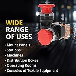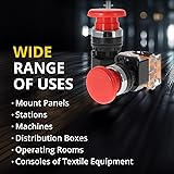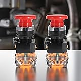 Emergency Push Button Switch, Red Mushroom Head, for Home or Industrial Equipment, Operating Rooms, Distribution Boxes, NO NC, 22mm, Spring Return (2 Pack)
