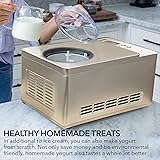 Award-Winning Ice Cream Machine: Awarded Food & Wine magazine’s "Best Compressor-Style" ice cream maker, it makes up to 2 quarts of fresh, delicious homemade ice cream per batch; Add fruit, nuts, syrups and more for fully customized frozen treats Yogurt Maker Machine: This ice cream machine for home doesn't just make frozen desserts - a special yogurt function allows you to combine your favorite raw, organic ingredients and diary or non-dairy milks to make fresh, natural yogurt Self-Freezing Technology: No need to pre-freeze a bulky canister or bowl, this self-cooling electric ice cream maker allows you to quickly and easily make gelato, ice cream, and sorbet using ingredients you trust from the comfort of home Convenient Continuous Use: This homemade ice cream maker features a powerful built-in compressor freezer that allows for continuous use without the inconvenience of having to pre-freeze the removable stainless bowl; BPA-free churn blade also included Premium Features: Unlike other ice cream makers, the Whynter ice cream maker with compressor features an extended cooling function that prevents ice cream from melting and a motor protection function that protects against overheating and damage