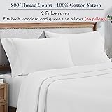 Heirloom Soft, Smooth & Thick Certified 800 Thread Count 100% Cotton Sateen, 2 White Standard Pillowcases Fits Standard & Queen Size Pillows (Bright White)