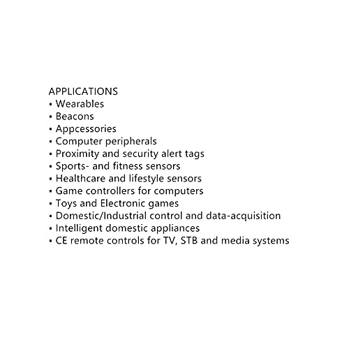 - ➤ Wide Application Use -- Widely applicable to wearable accessory,computer peripherals,proximity and security alert labels,sports and fitness sensors,healthcare sensors,computer game controller,toys and video games,domestic / industrial control and data collection,smart appliances,CE remote control for set-top box and media system