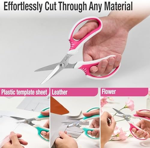 - ✂️ HEAVY DUTY SCISSORS WILL MAKE CUTTING EASIER: The high-leverage design of our craft scissors makes cutting tough materials effortless. Enjoy hassle-free use with ergonomic handles designed for maximum comfort and control.