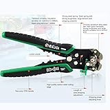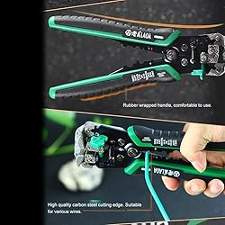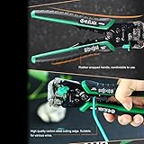 💓STRIPPING WIRE: Strip wire from 8 to 26 AWG (0.13-10.0mm²) with our self-adjusting mechanism. 💓CRIMPING: Crimp AWG 10-22 (0.5-6.0mm²) terminals, and 7-8mm ignition terminals(spark plug). 💓Strong steel spring. Steel spring with strong toughness, large tension and stripping powerful. 💓Chrome vanadium alloy steel jaw. With good hardness, strong toughness and large tension,suitable for AWG 8-26 wire. 💓Mainly apply to strip sheath wire, core wire and multiple strand sheath line. Also wire cutting, bare terminal and insulation terminal crimping.