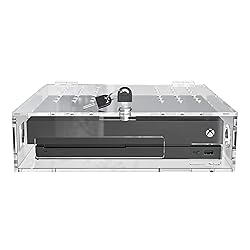 - Locking Acrylic Case compatible with Xbox One X and Xbox One S. This acrylic case is designed for light security, preventing damage, and deterring theft in public or private gaming environments. Mounting Hardware and Xbox One X gaming consoles purchased separately and are NOT included with this product.