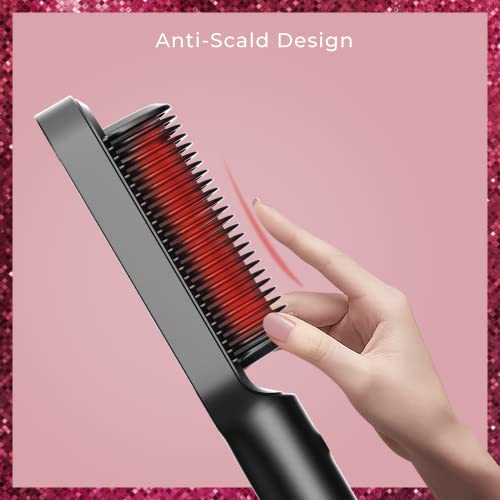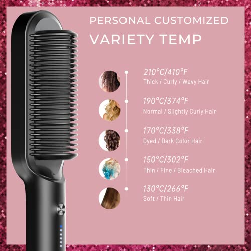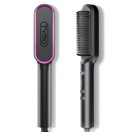 Tymo hair straightener brush - Tymo ring curly hair straightener with 20s fast heating, 5 thermostatic level hot hair straightener combs, 30 minute auto-off & 110V-240V, hair silky straightening brush