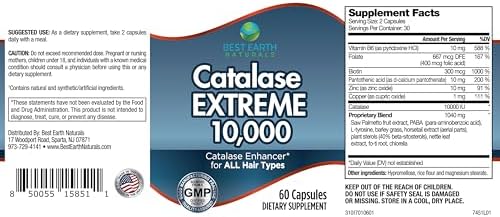 Best Earth Naturals Catalase Extreme Supplement 10,000 with Saw Palmetto, Biotin, Fo-Ti, PABA - Hair Supplements for Strong Hair - 60 Capsules (30-Day Supply)