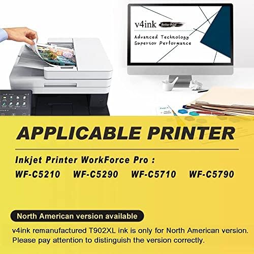 - 【Solo para América del Norte】El paquete de tinta v4ink remanufactured T902XL es solo para la versión de América del Norte, por favor, preste atención para distinguir correctamente la versión.