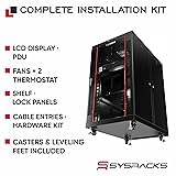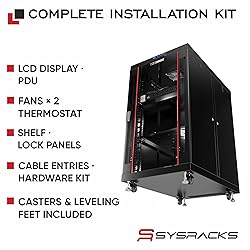 - SYSRACKS Portable Server Rack Cabinet is a 19-inch rolling server cabinet enclosure designed for IT, network and AV equipment installations requiring mobility and higher load capacity.Heavy-duty steel construction supports up to 220 lbs of rack-mounted hardware, while the deeper cabinet format provides additional clearance for larger equipment, cabling and power components.Integrated cooling and monitoring system includes two built-in cooling fans and a thermostat with LCD display to help manage airflow and operating temperature for active hardware.Secure and service-friendly enclosure features fully lockable perforated front and rear doors, removable side panels, adjustable vertical U-mark rails and brush-style dust-proof cable entry points.Commonly used for servers, switches, patch panels, UPS systems, NAS, AV processors and security equipment in offices, labs, studios, network rooms and mobile or temporary deployments.