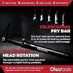 Olsa Tools Adjustable Pry Bar | Adjustable Angles & Extendable Length From 13.3"-18.5" | Extendable and Indexable Pry Bar | Indexing Pry Bar for Mechanics | Automotive Pry Bar | Professional Grade