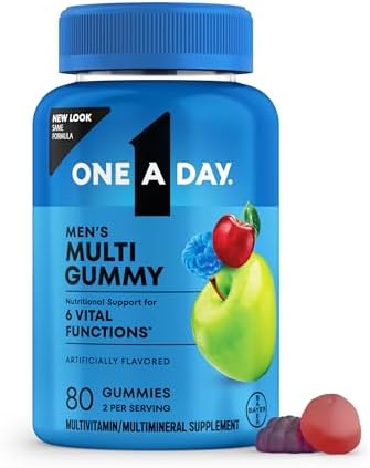 One A Day Men’s Multivitamin Gummies, Multivitamin para Hombres con Vitamina A, C, D, E, Calcio y Más para Apoyar la Salud de los Músculos, Gomitas, 80 Unidades