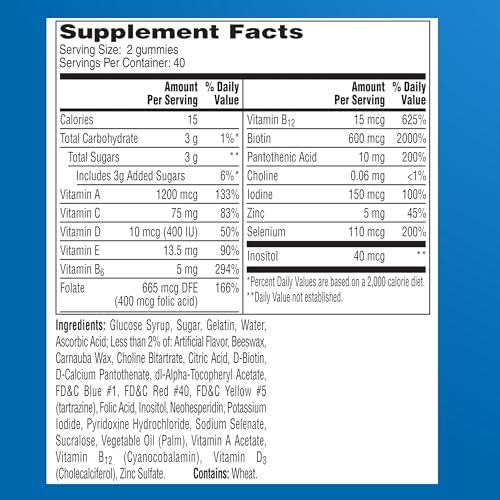 Las gomitas One A Day Men's VitaCraves ofrecen una amplia variedad de nutrientes clave en una forma de gomitas fáciles de masticar. Este multivitamínico diario está especialmente formulado para hombres y contiene vitaminas A, B12, B6, C, D, E, ácido fólico, biotina, ácido pantoténico, yodo, zinc y selenio. Las vitaminas y minerales son nutrientes esenciales que juegan un papel crítico en la buena salud general. One a day men's VitaCraves están formulados para apoyar un estilo de vida activo, la salud del corazón, la función muscular saludable, la energía física ayudando a convertir el alimento en combustible, y la salud inmunológica. Adultos y niños de 12 años en adelante: masticar completamente dos gomitas al día. Los multivitamínicos de un día pueden proporcionar el apoyo nutricional que usted y su familia necesitan en cada etapa de la vida. No es un reemplazo para los medicamentos para el corazón. Esta declaración no ha sido evaluada por la Administración de Alimentos y Medicamentos. Este producto no está destinado a diagnosticar, tratar, curar o prevenir ninguna enfermedad.