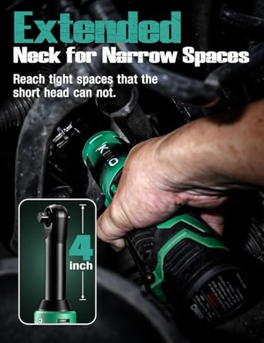 - 🔧【Neck Largo para Espacios Estrechos】Con un cuello de 4" largo y una cabeza ultra delgada y compacta de 3/8", el KIMO Extended Cordless Ratchet alcanza fácilmente espacios estrechos, facilitando el aflojamiento o apretado de tuercas. Adiós a las luchas agotadoras con esta herramienta poderosa y fácil de usar.