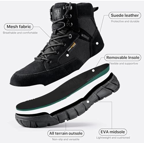 - PERFECT INDOOR & OUTDOOR BOOTS FOR MEN - Designed for Spring Summer Autumn and Winter, offers all day comfort for outdoor activities and daily life. Ultralight style of hiking boots men, also can be wore as summer work boots, hunting boots, army boots, interceptor boots, security boots, airsoft boots, duty boots, mountaineering boots, etc. A good choice as gift for him. WHY CHOOSE US: High quality and If you have any concerns, please do not hesitate to contact us