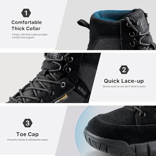 FREE SOLDIER Men's Waterproof Hiking Tactical Work Boots 6 Inches Lightweight Military Breathable Desert Boots(Black US 11)