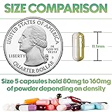 - Premium Size 5 Empty Capsules THESE CAPSULES ARE VERY TINY. PLEASE CHECK THE SIZING CHARTS IN THE PHOTOS BEFORE PLACING YOUR ORDER. Do you fill your own dietary supplements, nootropics, herbs or powders? Do you want to budget your money by buying top quality empty pill capsules in bulk? These XPRS Nutra easy-fill easy-snap lock size 5 pill capsules are perfect for DIY easy to swallow dietary pills capsules whether you fill them manually or with a capsule filler. Size 5 capsules hold 75 mg to 155 mg of your desired powder or supplement. Because each powder, vitamin, or medicine has different grain sizes and weights, the total fill volume varies from ingredient to ingredient. Dissolves Rapidly Each pill capsules empty pill casing is made from 100 percent bovine gelatin without preservatives or additives. You can use a capsule filling machine or fill them manually They dissolve quickly in your GI tract for better absorption and greater bioavailability. Our capsules are clean and have no taste, fragrance or odor. Secure Click Safe Design Unlike many bovine based capsules, ours have a built in click shut design. Thats important because it protects the contents of your pill from spilling out or getting damaged from moisture buildup or stale air contamination. Our capsules are colored to make manually filling as quick and easy as possible. Choose our 100 individual gelatin capsules and stock up on your favorite empty capsules. Join thousands of happy customers and up your health game.