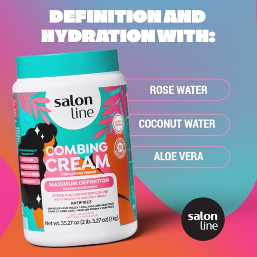Maximum definition. Intense shine. All-in-one care. Salon Line’s Maximum Definition Combing Cream delivers total curl control, unmatched softness, and a lasting luminous finish. With deep hydration and conditioning power, it effortlessly detangles, tames frizz, and defines curls with a silky, lightweight touch. Its vegan formula blends multifunctional actives that truly make a difference: Rose Water – Hydrates, strengthens, and adds a delicate floral scent. Coconut Water – Packed with vitamins and minerals to restore hair health and enhance natural shine. Aloe Vera – Regenerates, hydrates, and seals the hair fiber for bouncy, defined curls full of vitality. Perfect for wavy, curly, and coily hair, including strands that are frizzy or lacking definition. Ideal for those seeking professional-level results at home—with simplicity and high performance. How to use: Apply to damp hair, section by section. Detangle with a wide-tooth comb and scrunch upward to encourage curl formation. Repeat as needed. For extra definition, apply closer to the roots. Up to 30 uses. Free from sulfates, petrolatum, mineral oil, paraffin, silicones, and salt. Contains parabens. Daily use. No rinse needed. Recommended for ages 12 and up.