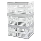 Vababa 3-Pack Plastic Stackable Collapsible Storage Crate, 15 L Stacking Folding Storage Basket