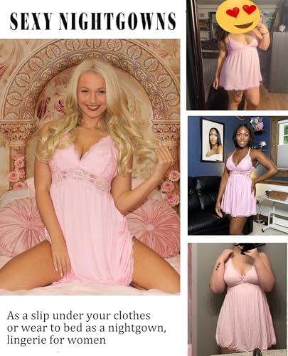 Avidlove Women Chemise Night Gown Lace Modal Sleepwear V-Neck Full Slip Babydoll Lingerie Sexy Nightgowns