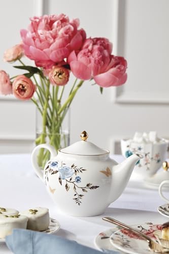 The Sprig & Vine teapot is the perfect way to enjoy your favorite tea. Inspired by the beauty of vintage textiles, this collection brings the bright botanicals and butterflies of a lush English garden to your home. A sliver of metallic adds a gleaming touch to give this floral teapot its golden finish.