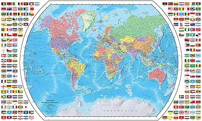 Peel and stick repositionable World map is super easy to place on the wall, door or any surface. Map has more than 3400 place name and is framed by World Country Flags. Map shows detailed land topography with mountain peak elevations shown in both Feet and Meters Maps is very detailed with Ocean topography including Seamounts, Fracture zones, underwater ridges, basins, World's Deepest Soundings, and Trenches. Made in USA by US State Department Map guidelines, this map is Ideal for work at home office background when video conferencing or just for kids rooms to help the exploring
