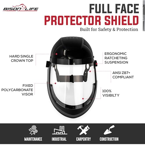 - FULL FACE COVERAGE & PROTECTION – Designed for maximum safety, this full face shield features an oversized clear visor for wide coverage. Built-in side and chin guards protect against splashes and flying debris, while the extended crown helps shield against overhead hazards.