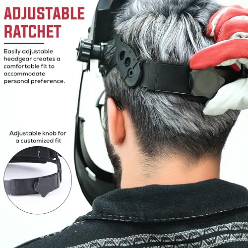 - EASY TO USE: Designed for ease of use and created to ensure as custom of a fit as possible for full face coverage. This ratchet suspension is fast, lightweight and secure. The easily adjustable headgear tilts the visor to be near or far from the face for a custom fit and to accommodate personal preference. The premium polycarbonate visor curves to a facial fit for the best visibility and reliable protection from splashes, airborne debris and particles.